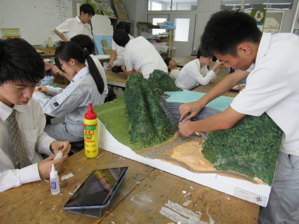 都市工学科3年生は、週3時間の「課題研究」の授業に取り組んでいます。少人数の班に分かれ、主体的な学びと探究心を育むことを目的に、1学期からさまざまな活動を展開してきました。現在、各班とも完成に向けて制作活動が本格化。その中でも、地域活性化班は今週土曜日(10月11日)、灘中央市場にて炊き出しイベントを実施します。屋台も完成し、準備は万端!地域の方々との交流を通じて、学びを社会へとつなげる貴重な機会となります。ぜひ、都市工学科生徒たちの熱意あふれる活動を見に来てください!
