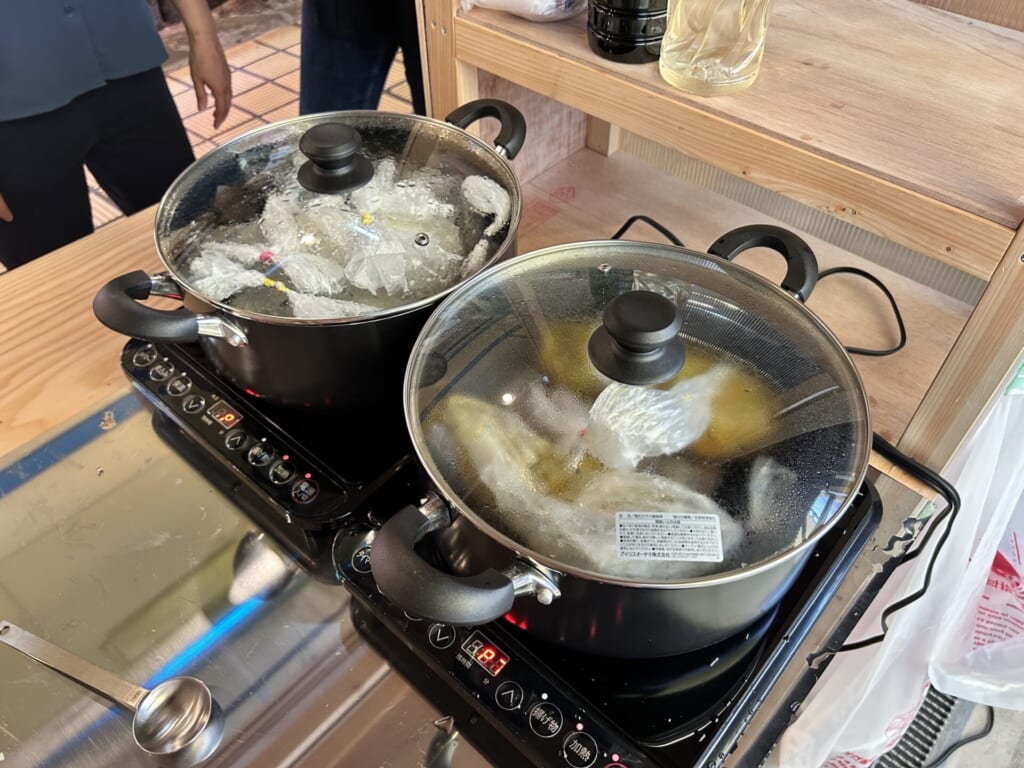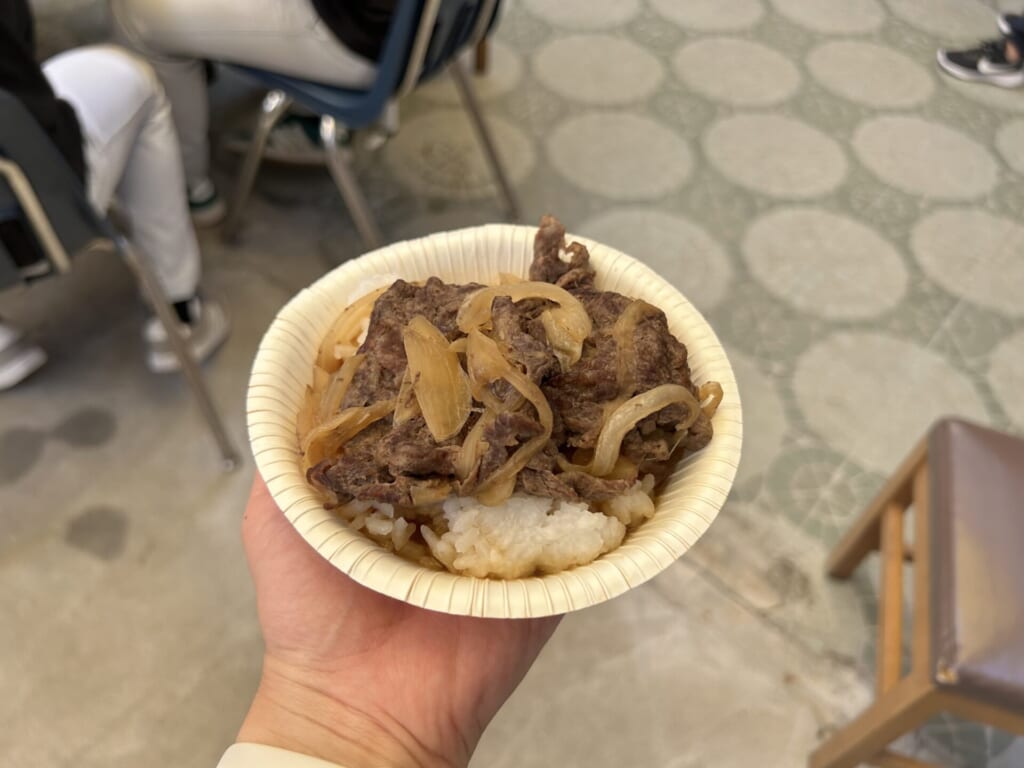 【メニュー】白米:無料、牛丼・いもきんとん:300円(いずれもポリ袋調理)
