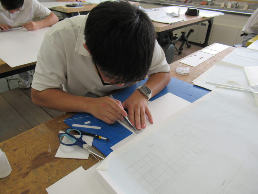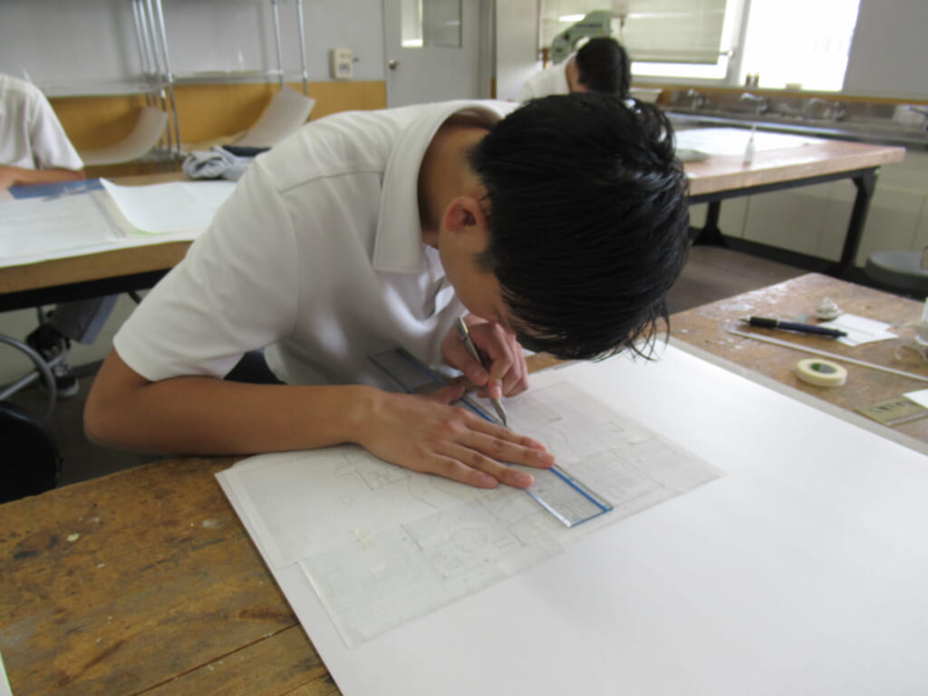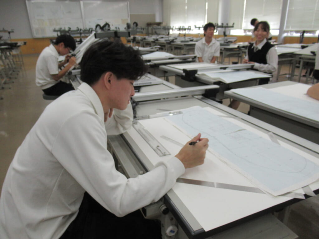 10月に入り、体育大会に向けた短縮授業が始まりました。限られた時間の中でも、生徒たちは集中して授業に取り組み、充実した学びの時間を過ごしています。3年生の卒業設計では、模型制作がスタートしました。「どうやって形にすればいいのか?」と悩みながらも、試行錯誤を重ねて形をつくる姿が見られます。自ら考え、手を動かすことで、設計の力を養っています。 2年生の都市製図では、兵庫県内の工業高校が参加する製図コンクールに向けて、図面制作が進行中です。丁寧さと正確さを大切にしながら、出展作品にふさわしい図面を仕上げています。 1年生の工業技術基礎で学ぶ「測量」の授業では、計算方法や機器の扱い方を学びながら、初めての実習に取り組んでいます。基礎をしっかりと身につけることで、今後の学びにつながる力を育んでいます。 7限目は体育大会に向けて、エール交換の練習にも熱が入っています。仲間と声を合わせ、団結力を高める時間となっています。日々の授業や行事に真剣に向き合う生徒たちの姿は、とても頼もしく感じられます。これからも、目の前のことに一生懸命取り組み、成長を重ねていきましょう!