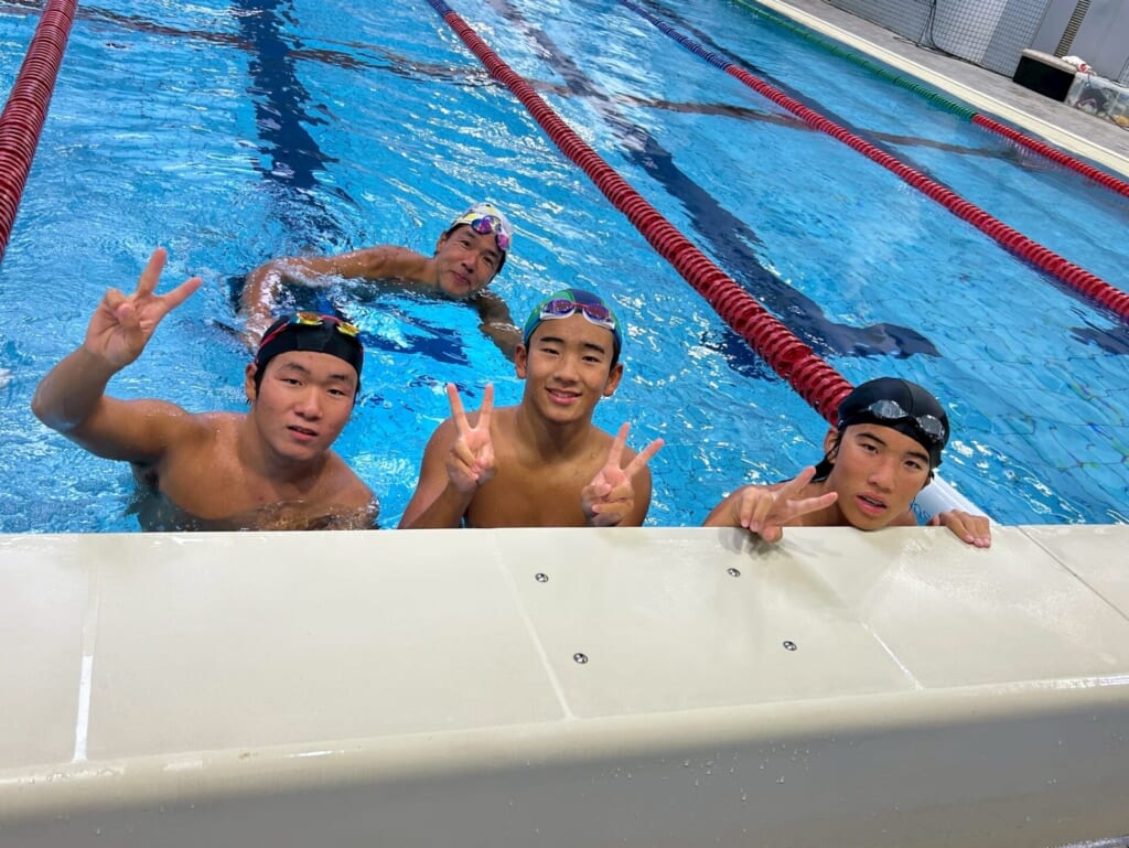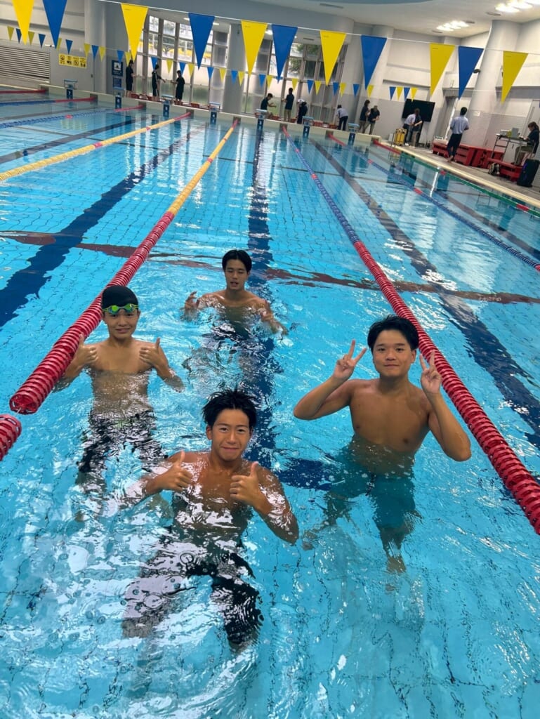 高校生たちと一緒に4×50mメドレーリレー、フリーリレーにオープン参加しました。