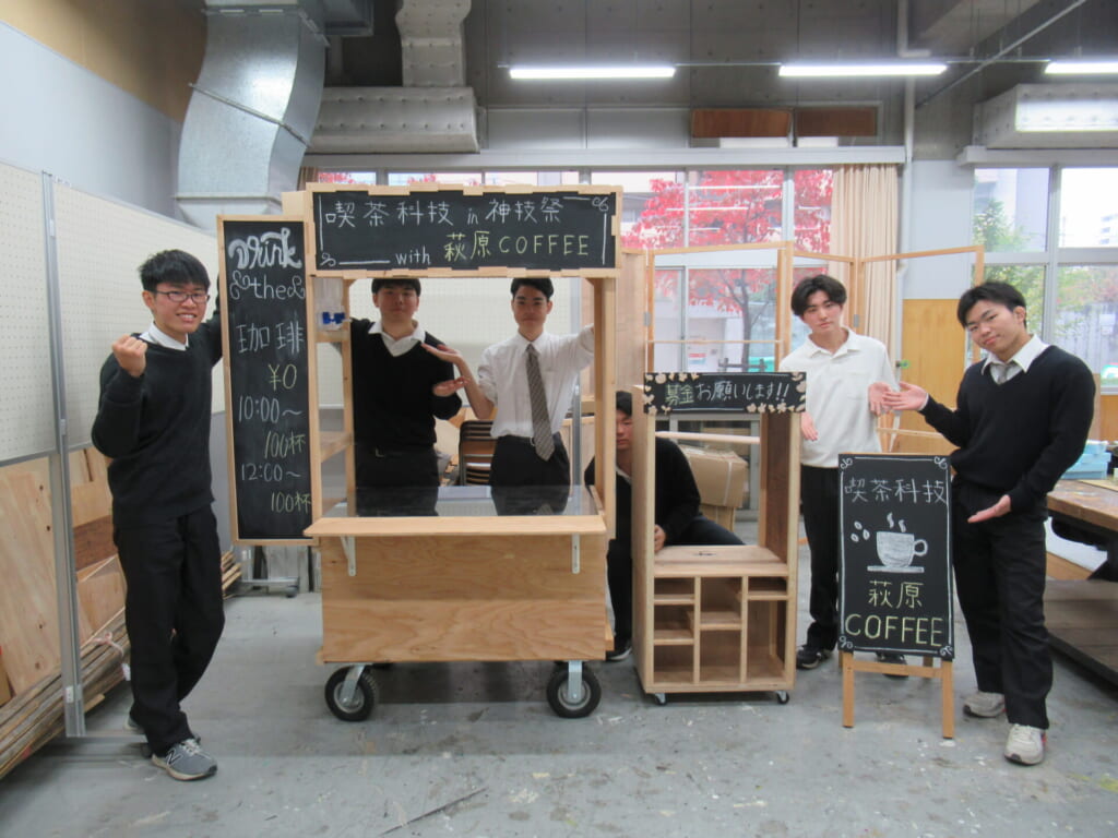 私たち地域活性化班は、地域のみなさまと連携しながら、まちづくりに関する活動を行っています。今年で3年目となる灘中央市場様との取り組みでは、屋台を制作し、炊き出しイベントを実施しました。この屋台のお披露目として、11月8日(土)の文化祭では「チャリティーコーヒー」をふるまいます。今回のコーヒー提供は、灘区に本社を構える萩原珈琲株式会社様が取り組む「旧醤油蔵プロジェクト」に私たちが参加させていただいたことで実現しました。地域活性化班の活動は、学校の先生方だけでなく、地域の方々のご協力があってこそ成り立っています。生徒たちは実践を通して、地域とのつながりやまちづくりについて学んでいます。文化祭当日は、日頃の感謝の気持ちを込めてコーヒーをお届けします。ぜひ屋台にお立ち寄りください!
