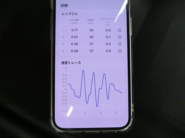 1RMの100%の時は、スクワットで0.3m/s、ベンチプレスで0.2m/s前後の値が多くみられました。1RMを60~80%の設定にすれば0.5~0.8m/sの値となります。速度を基準としたトレーニングのメリットとしては、「目標達成の為の正しい速度数値を見出し、過剰なトレーニングや、負荷の低いトレーニングを避けることでトレーニング効率が向上する」、「速度を計測することで、いつもより拳上スピードが遅い場合を『コンディション不良』と判断する一つの材料となり、怪我の防止につなげることができる」以上の2点を今回の講義と実技で理解しました。