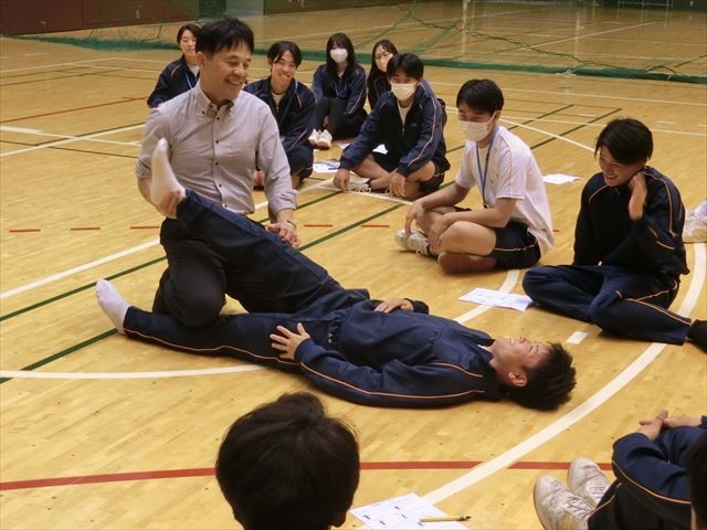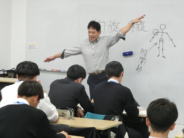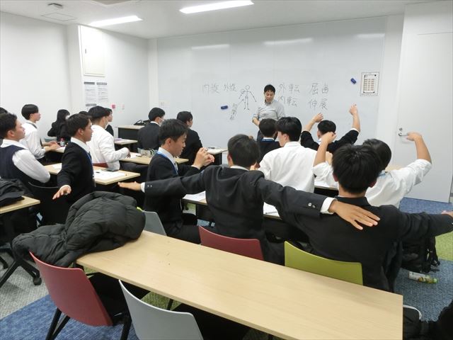 皆さんこんにちは。11月21日(金)4~6限目、S3スポーツ科学類型選択者は、甲南大学岡本キャンパスに於いて、曽我部晋哉教授の指導による「運動連鎖について考える」を前半は講義、後半は実技のスケジュールで受講しました。