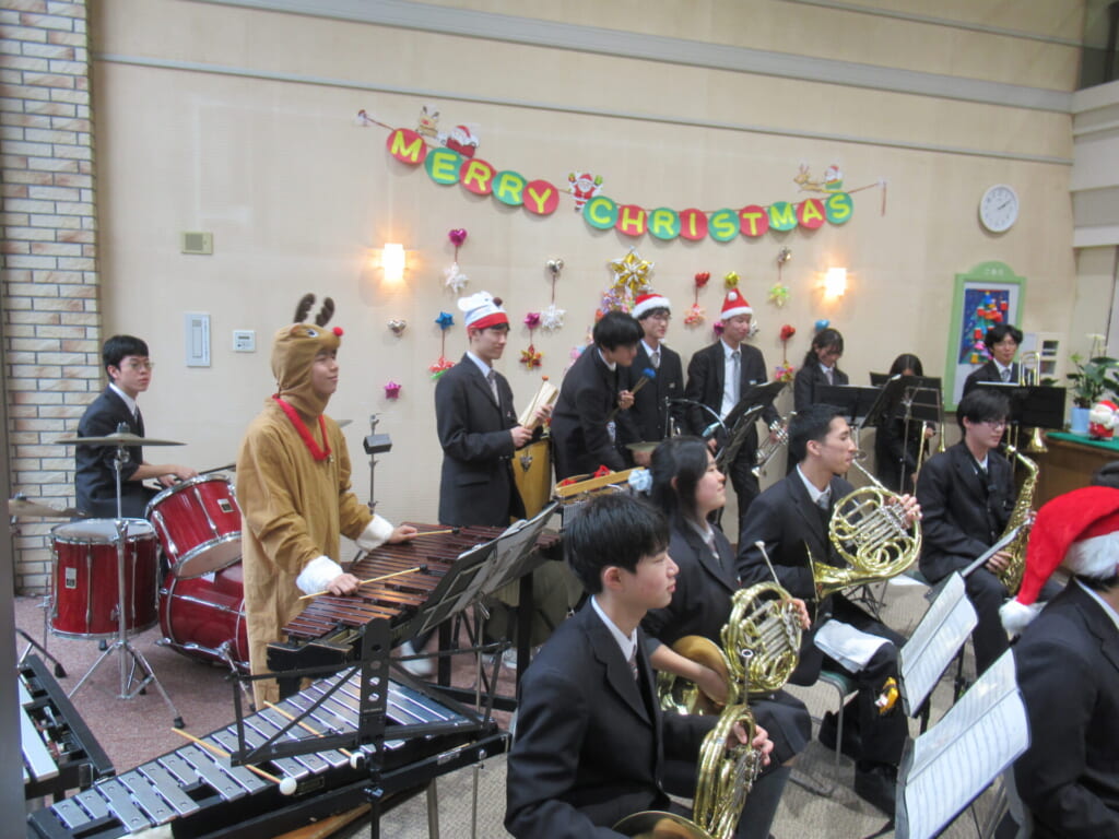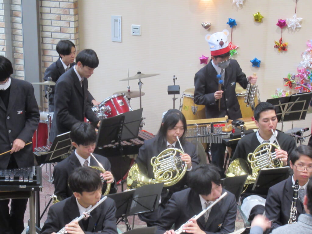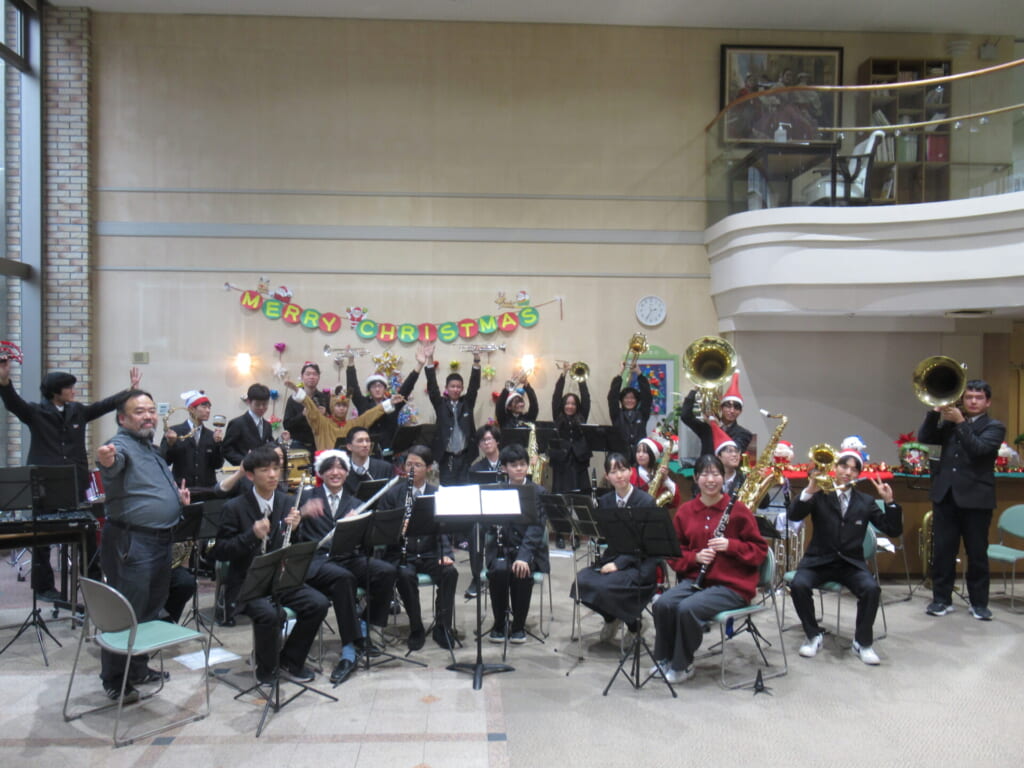 本校吹奏楽部は、地域の皆様との交流を大切にし、定期的に慰問演奏会を実施しています。 2025年最後の演奏となる今回は、12月25日(木)に特別養護老人ホーム「友愛苑」様を訪問し、4回目の演奏をさせていただきました。