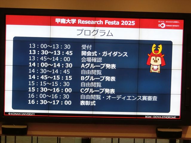 12月21日(日)に高校生、大学生の研究発表を合同で行う「甲南大学Research Festa 2025」が甲南大学岡本キャンパスで開催されました。本校からは2グループ3名が参加しました。テーマは以下の通りです。