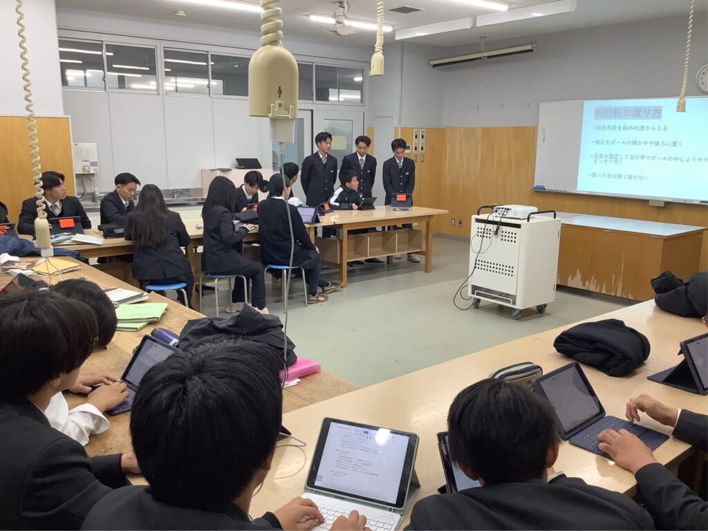 学期最後の課題研究の授業では、11グループに分かれて1年間取り組んできた研究成果をパワーポイントにまとめ、発表会を行いました。普段はグループごとに活動しているため、他のグループの研究内容を知る機会は多くありませんが、学期ごとに発表を行うことで、お互いの研究を共有する場を設けています。