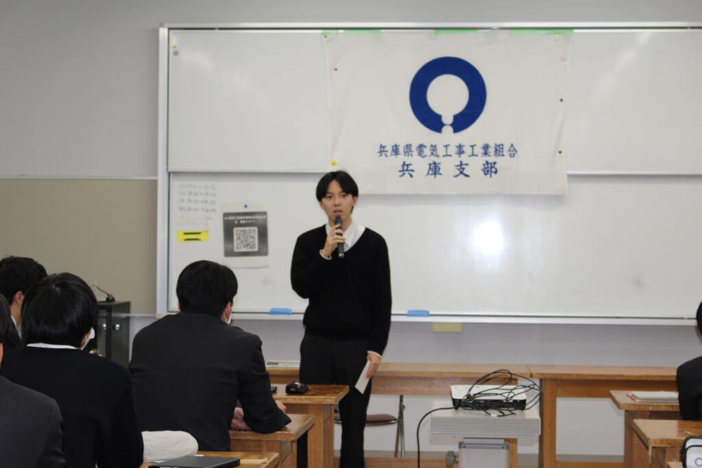 11月28日(金)、12月1日(月)の両日、兵庫県電気工事工業組合兵庫支部様をお迎えして、「電気工事業の今」を知ることを目的とした交流会を実施しました。今年で10回目になります。毎年、電気工事業に就職を希望する生徒も多く、実りのある交流会になりました。兵庫県電気工事工業組合兵庫支部様、本当にありがとうございました。