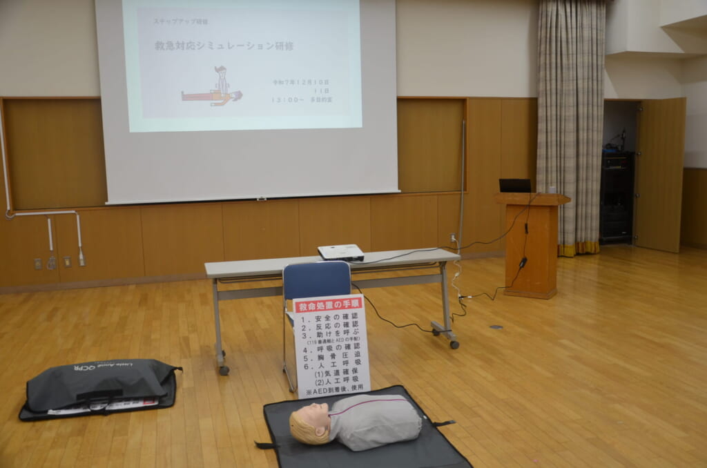救急時の対応における研修の行い、あらゆるケースについてシミュレーションを行いました。