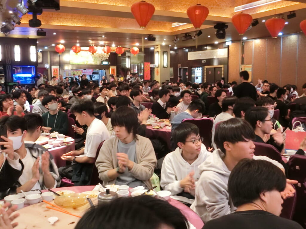 台湾修学旅行最後の夕食は「マライヤ」レストランでした。品数も多く、お肉中心の献立が好評でした。生徒たちも、モリモリと食べ、最後の夕食を楽しんでいました。学年生徒が一同に会する食事会の最後には、この修学旅行中に17歳を迎える生徒たちへ、サプライズの誕生日のお祝いをしました。「はじめての海外旅行、で17歳の誕生日を祝ってもらえるなんて感激です」とコメントを述べた生徒もいました。全員で歌うハッピーバースディソングで、会場全体が温かい空間包まれたひと時でした。