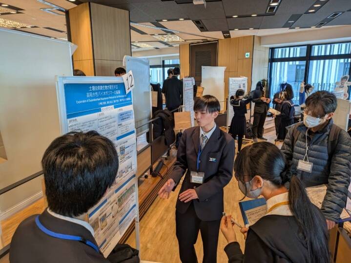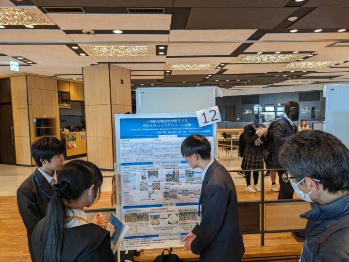 科学工学科からは、4つのテーマでポスター発表を行いました。生徒にとって、日頃の研究成果を多くの人に発表する貴重な機会となり、大変有意義な経験となりました。