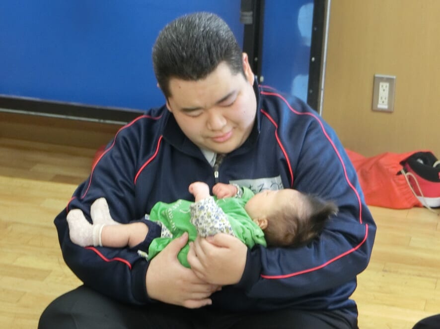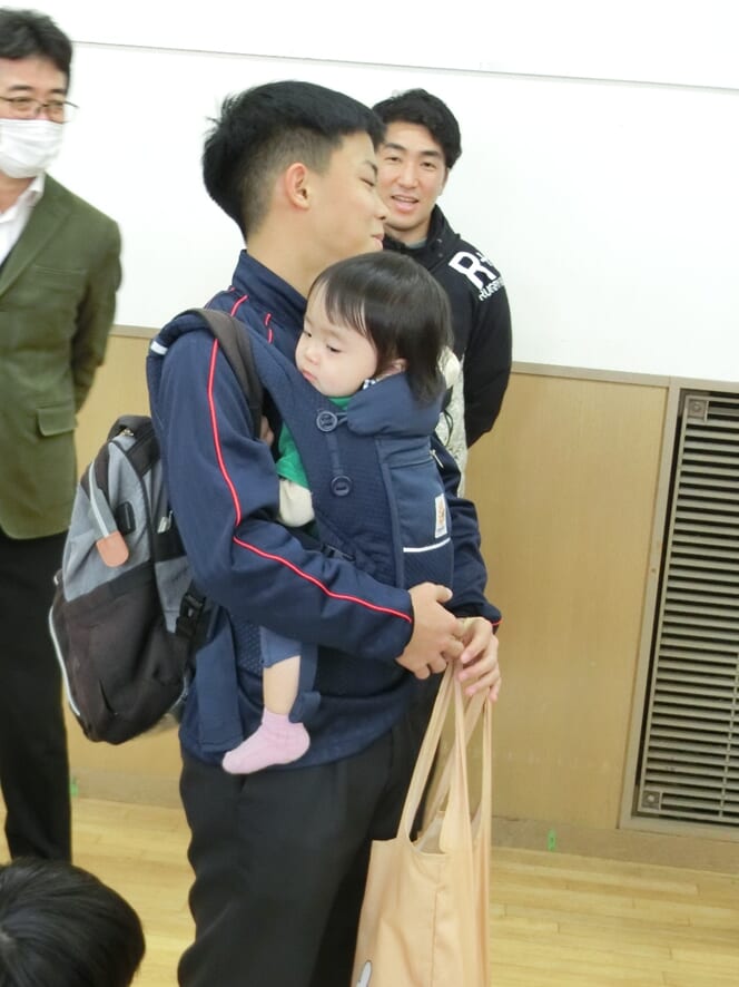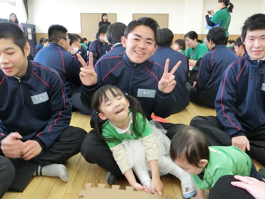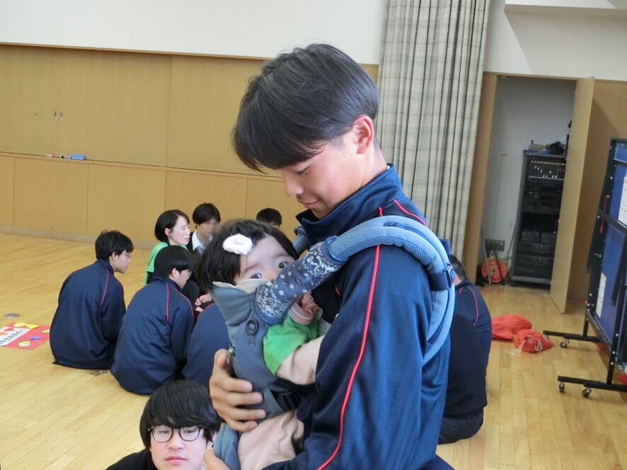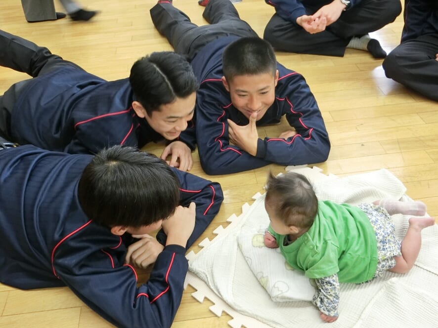 ・うつ伏せになると少し照れながらも目線を合わせて遊んでくれたり、抱っこをしていて泣き出すと、ごめんごめんといいながらあやしてくれ、生徒さんたちの優しさを感じ見ていてとても微笑ましかったです。