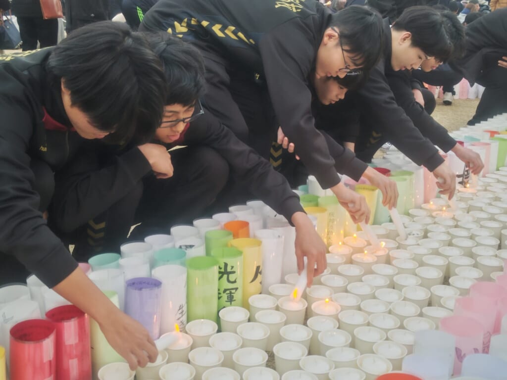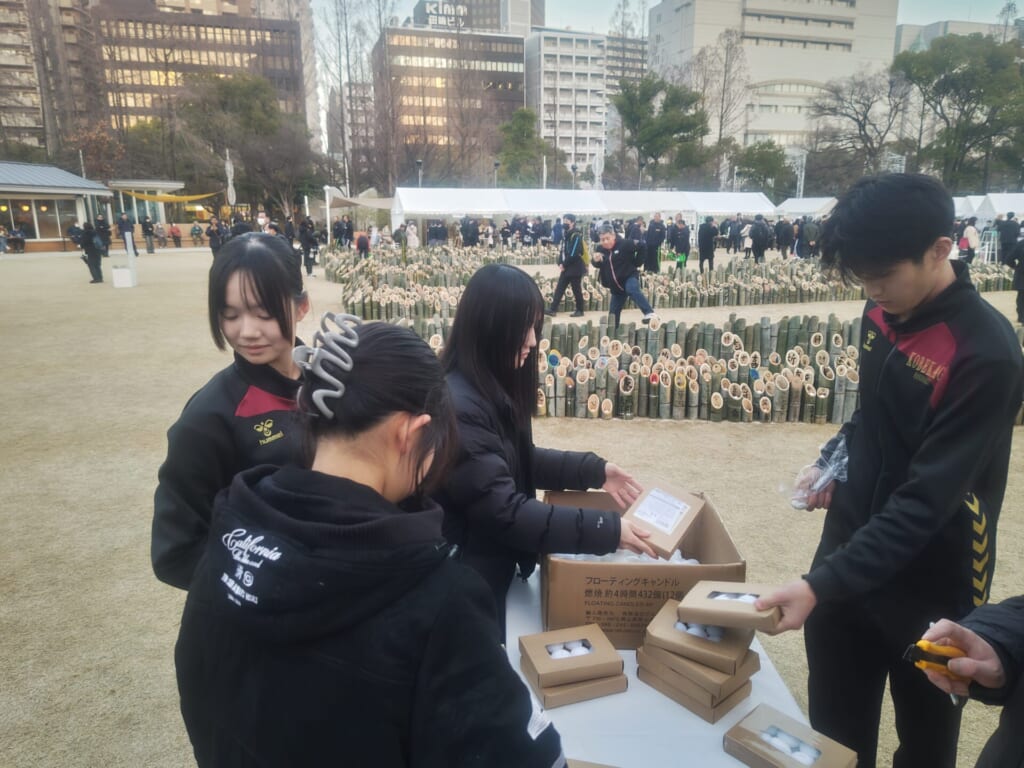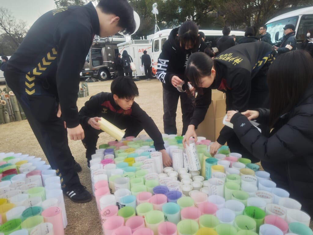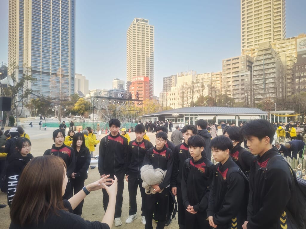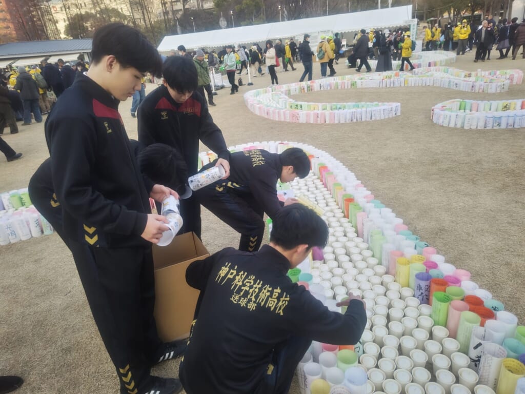 1月16日(金)、男子ハンドボール部の生徒たちが、東遊園地で開催された「阪神淡路大震災 1.17のつどい ~つむぐ~」のボランティア活動に参加しました。