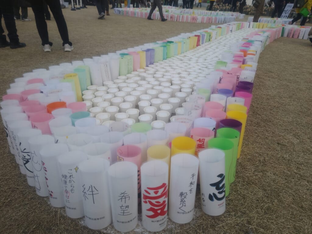 当日は、紙灯篭づくりや灯篭の設置、キャンドルの準備など、追悼行事の運営を支える活動に取り組みました。
