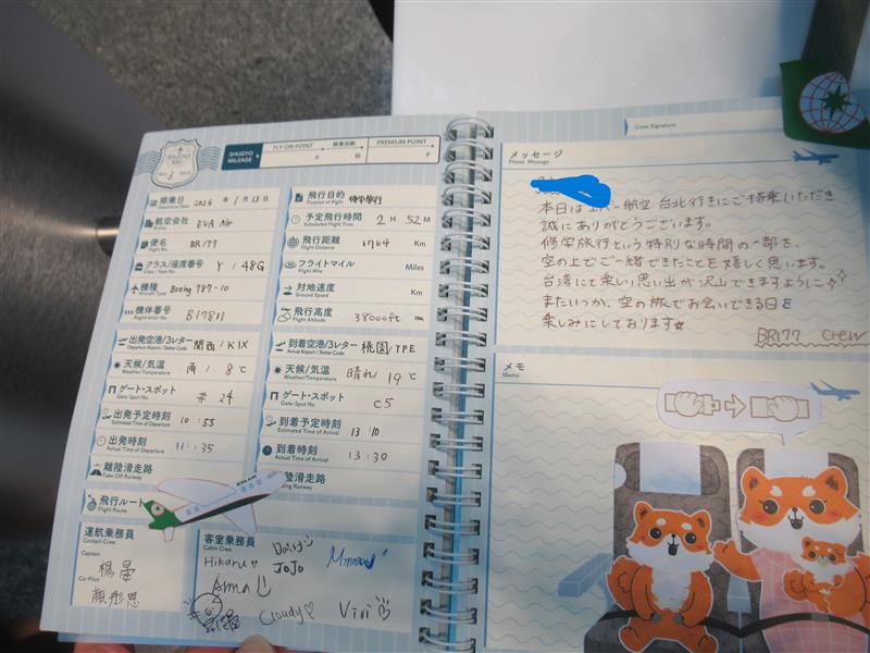 追記:生徒の中に、フライトログブックを持参している人がいました。飛行機の情報や搭乗のお礼を丁寧な文章でCAの方が書いてくれるのです。その生徒は飛行機好きで、お金を貯めては飛行機に乗り、空港で時間を過ごし、また飛行機に乗って帰ってくるそうです。将来は飛行機の整備に携わりたいと言っていました。近い未来に、その生徒の整備した飛行機に乗って台湾へ行きたいと思います。