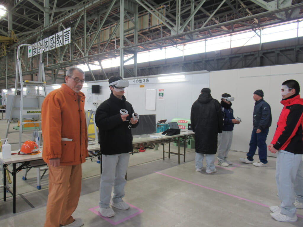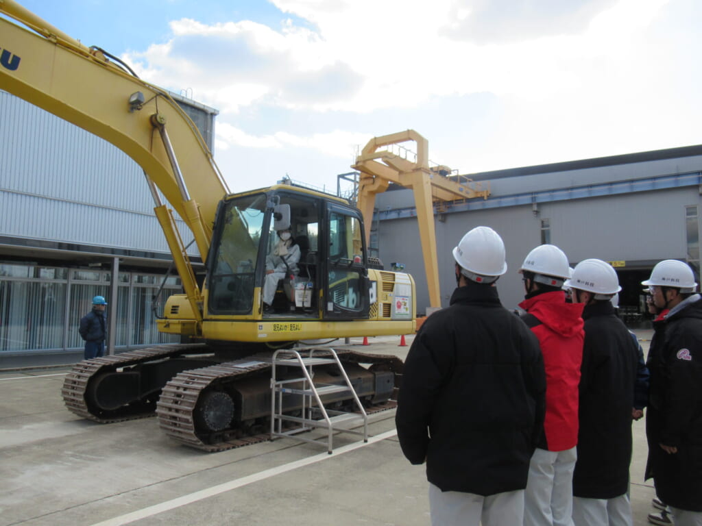 見学では、ICTを活用した建設機械の操縦を間近で見学したほか、工事現場で使用されるハーネスを装着し、高所から落下した際に身体にかかる荷重を体験しました。さらに、VRを用いた安全体験も行い、現場の危険性と安全対策の重要性を改めて実感することができました。
