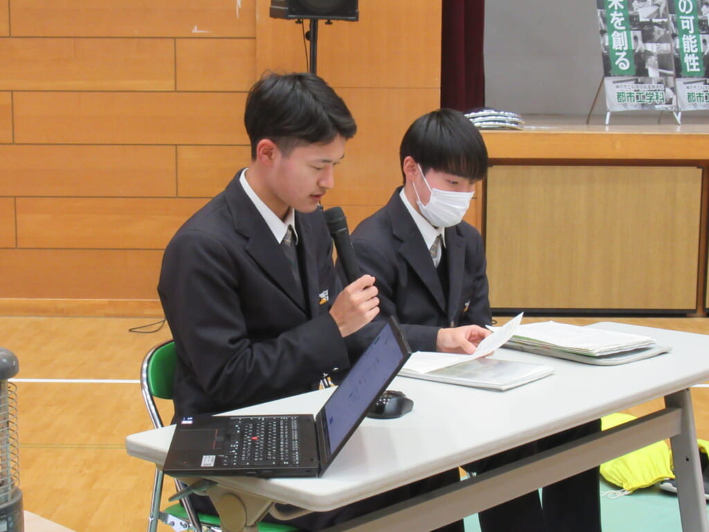 都市工学科3年生が全員履修する「課題研究」では、身近な疑問や問題を調査したり、ものづくりによって解決を試みたりする中で、主体性や探究心を育むことを目指しています。