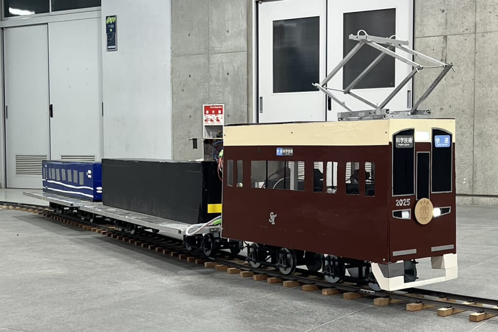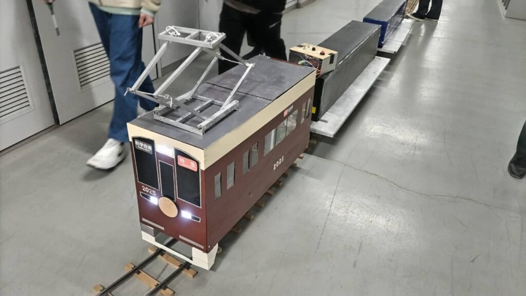 1月31日(土)電気情報工学科課題研究「5インチ線路を走る電気鉄道車両の製作」班が今年度3回目のミニ電車乗車体験会を開催しました。あいにくの天候で校内での開催になりました。