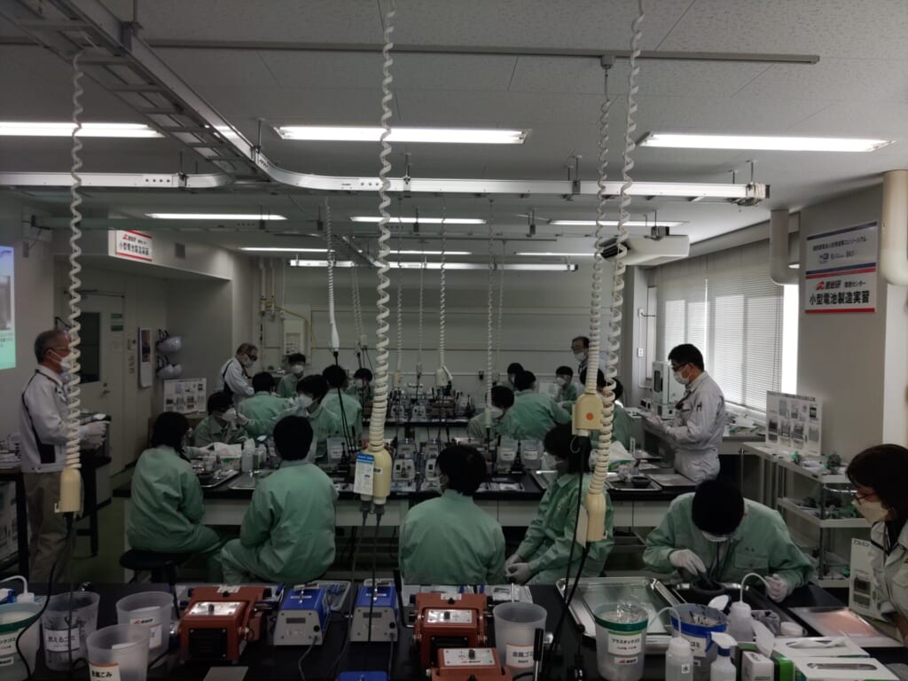このプロジェクトの一環として、電気情報工学科1年生が1月29日(木)と2月3日(火)に国立研究開発法人産業技術総合研究所関西センターで「小型リチウムイオン電池製造実習」に参加してきました。