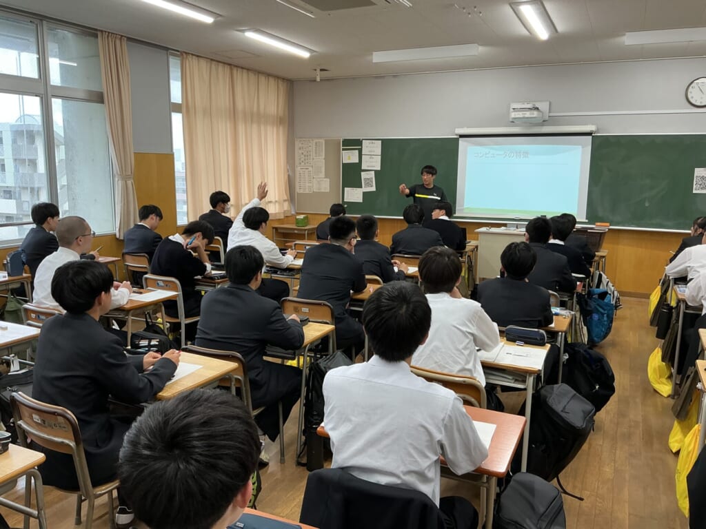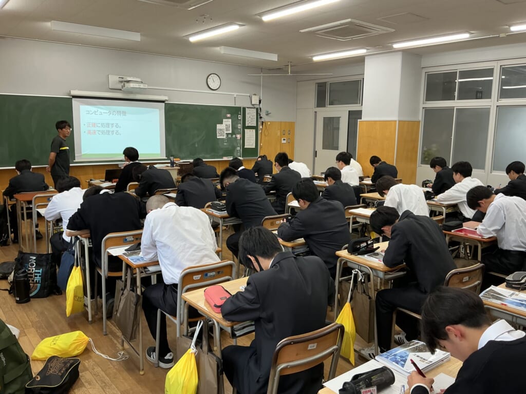 工業情報数理という情報の授業や工業技術基礎といった実習に取り組む1年生の姿がたくさん見られました。