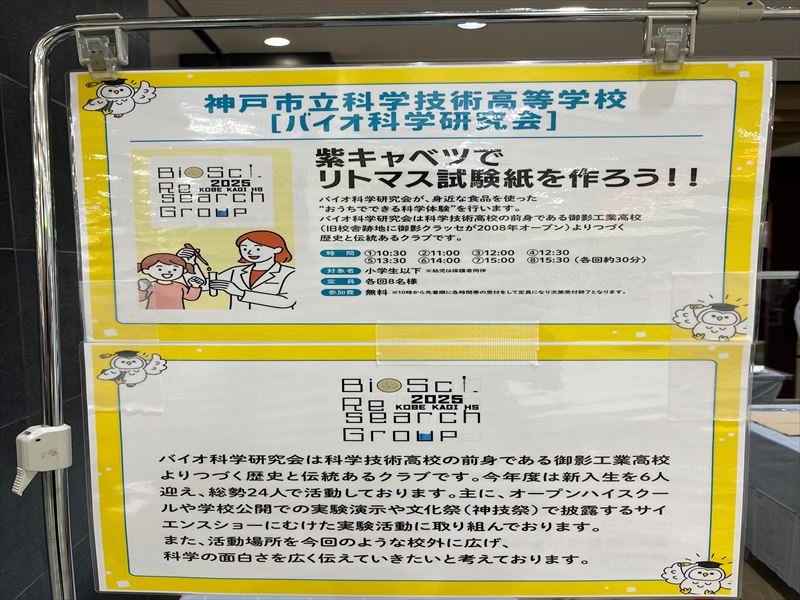2025年7月20日(日)、御影クラッセで開催された「夏の自由研究チャレンジ」にて、「紫キャベツでリトマス試験紙を作ろう‼」というテーマでワークショップを実施しました。紫キャベツに含まれるアントシアニンの性質を利用し、酸 […]